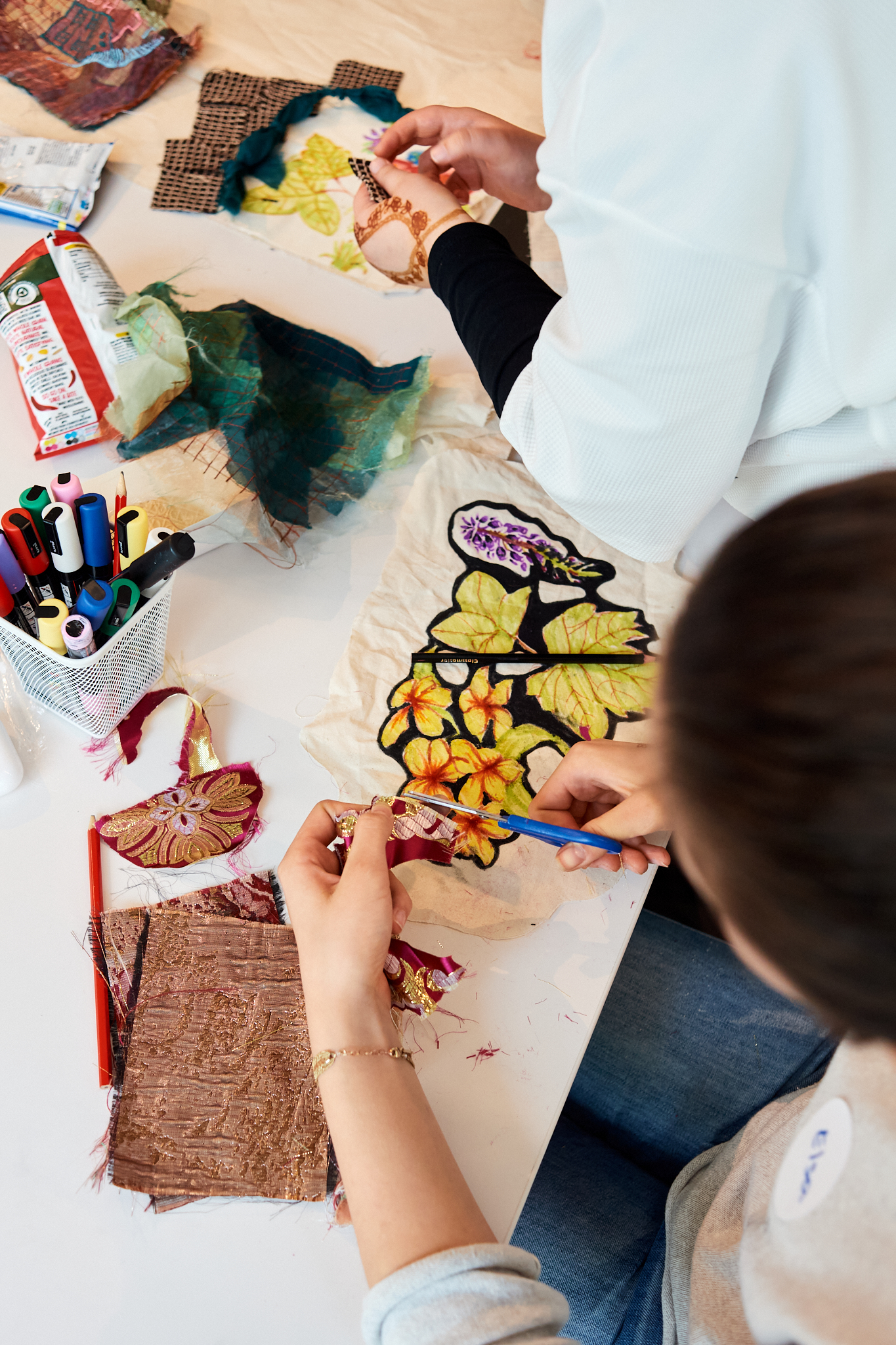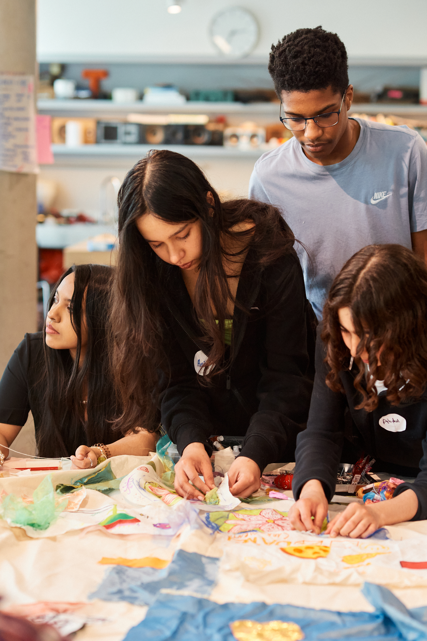 2025 was the fourth and final iteration of Ardagh Young Creatives, delivered by RESOLVE Collective on the theme of GRAFT. Working closely with the team, I co-designed the structure and workflow of the sessions to respond to the group’s abilities and interests, developing trust and a sense of ownership throughout. The textile-making process became a shared space for expression—where conversations naturally unfolded around personal stresses, climate anxiety, and the lived experience of growing up in London.