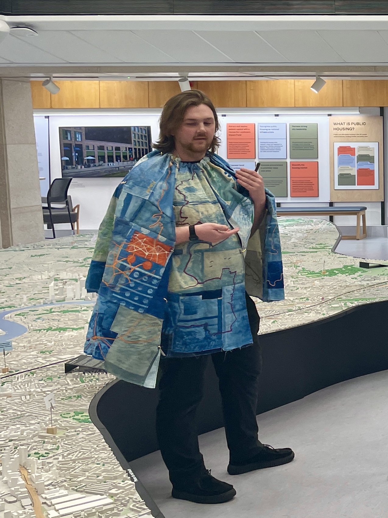 Research Quilting Process for a walking investigation into London's Lost Rivers. The project explores how different streams - of water, capital, people, and ideas have been lost - through culverting and damming, redrawing and relinquishing power, the project documents these losses through archival engagement. The quilting panels are designed to be iterative and detachable, wearable and to be engaged with in different formats.